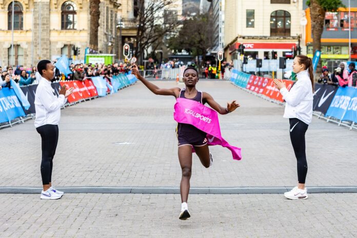 The diminutive athlete from the distance running capital of the world, the high-altitude Kenyan town of Iten, made mince-meat of this morning’s (Saturday 9 August) challenging Totalsports Women’s Race Cape Town course to win in 31 min 16 sec.